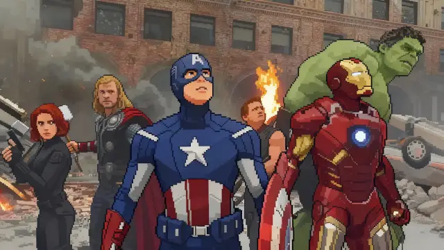Transform the image into pixel style, presenting the unique texture of retro blocks.